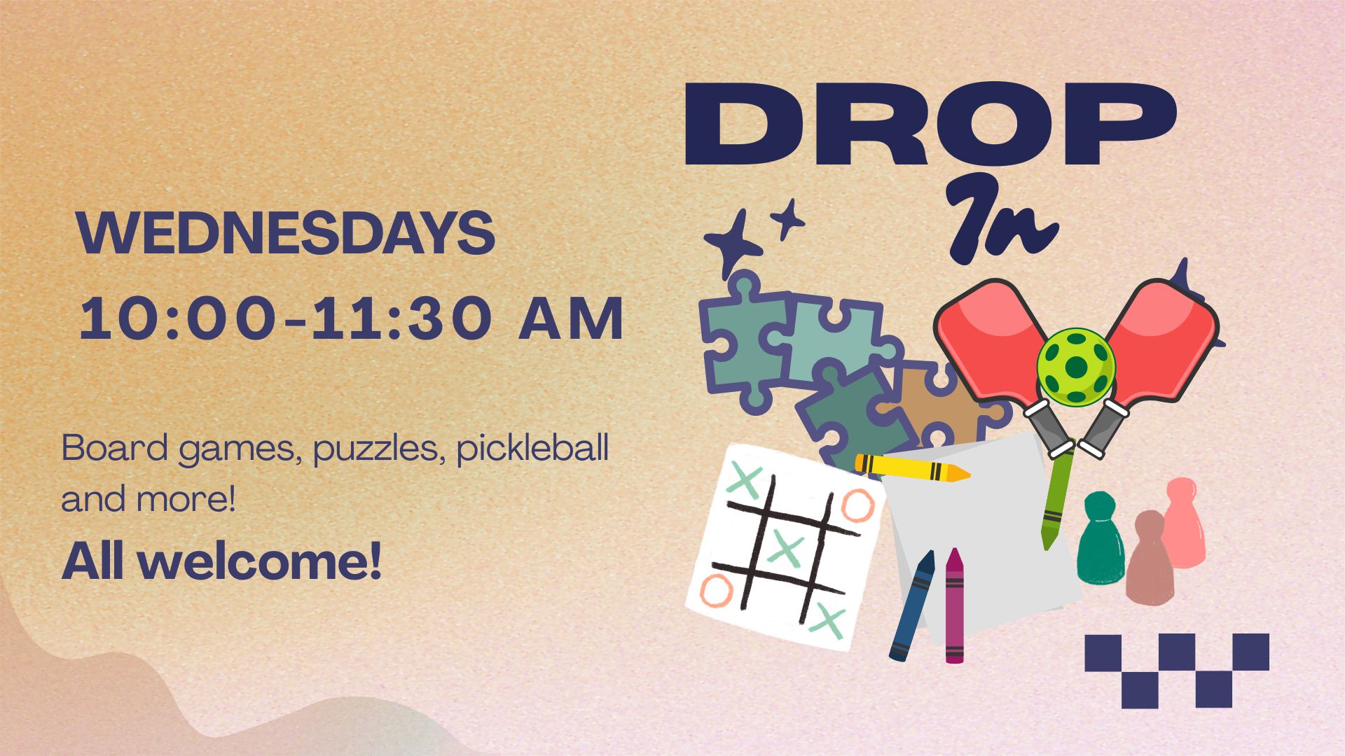 Join us for drop in games, puzzles, and more every Wednesday at 10:00 am!