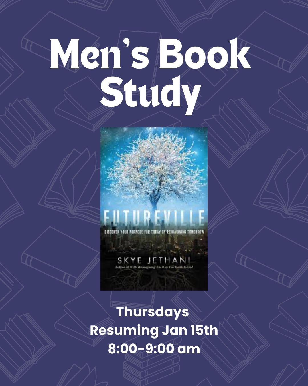 Our men’s book study is starting Futureville by Skye Jethani on Thursday, Jan 15th! Talk to Mark if you’d like a book (mark@firstb.net). Meet in the Fireside Room.