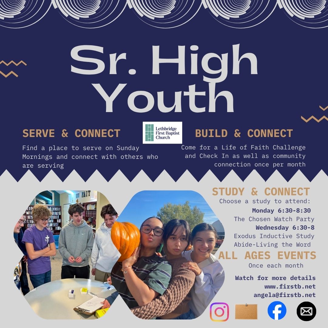 Sr. Highs, come and connect with others your age for fun, faith challenges, and growth in Scripture!