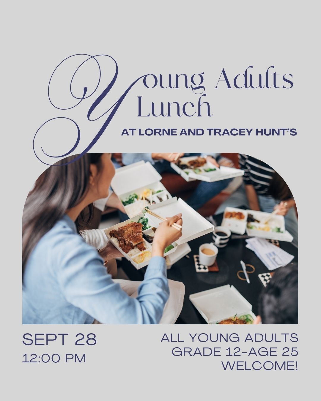 Young adults up to age 25 are invited to a BBQ lunch at Lorne and Tracey Hunt’s after the service! Email Mark for the address.