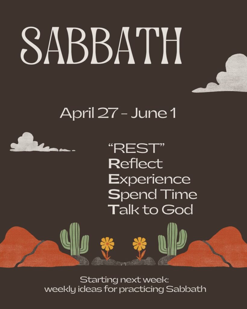Spending time with God and others is a hallmark of Sabbath! How can you spend time with God and others this week?