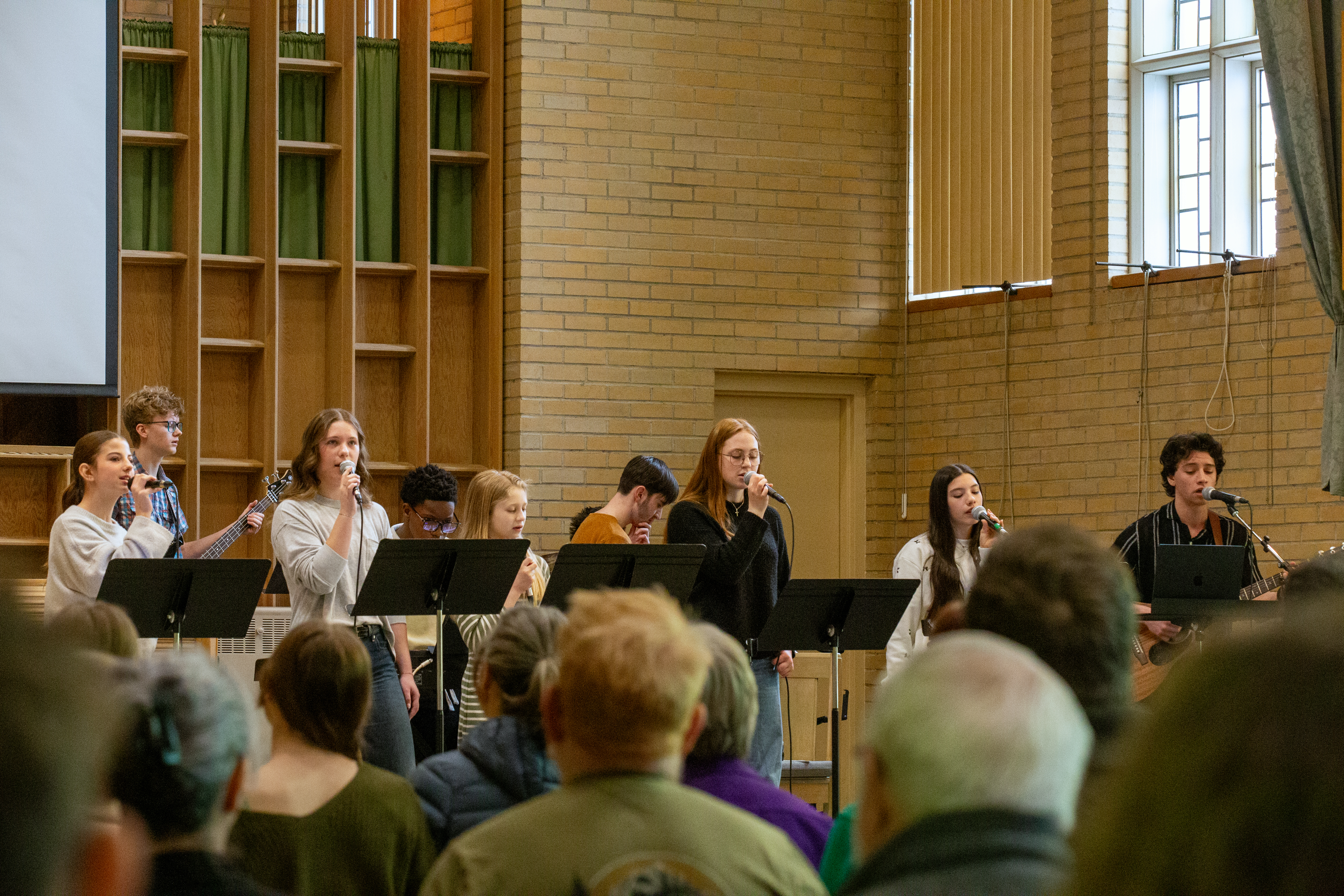 We have many opportunities to be involved! We invite you to share in our choir or handbell choir, which practice seasonally, or our regular worship team rotation.