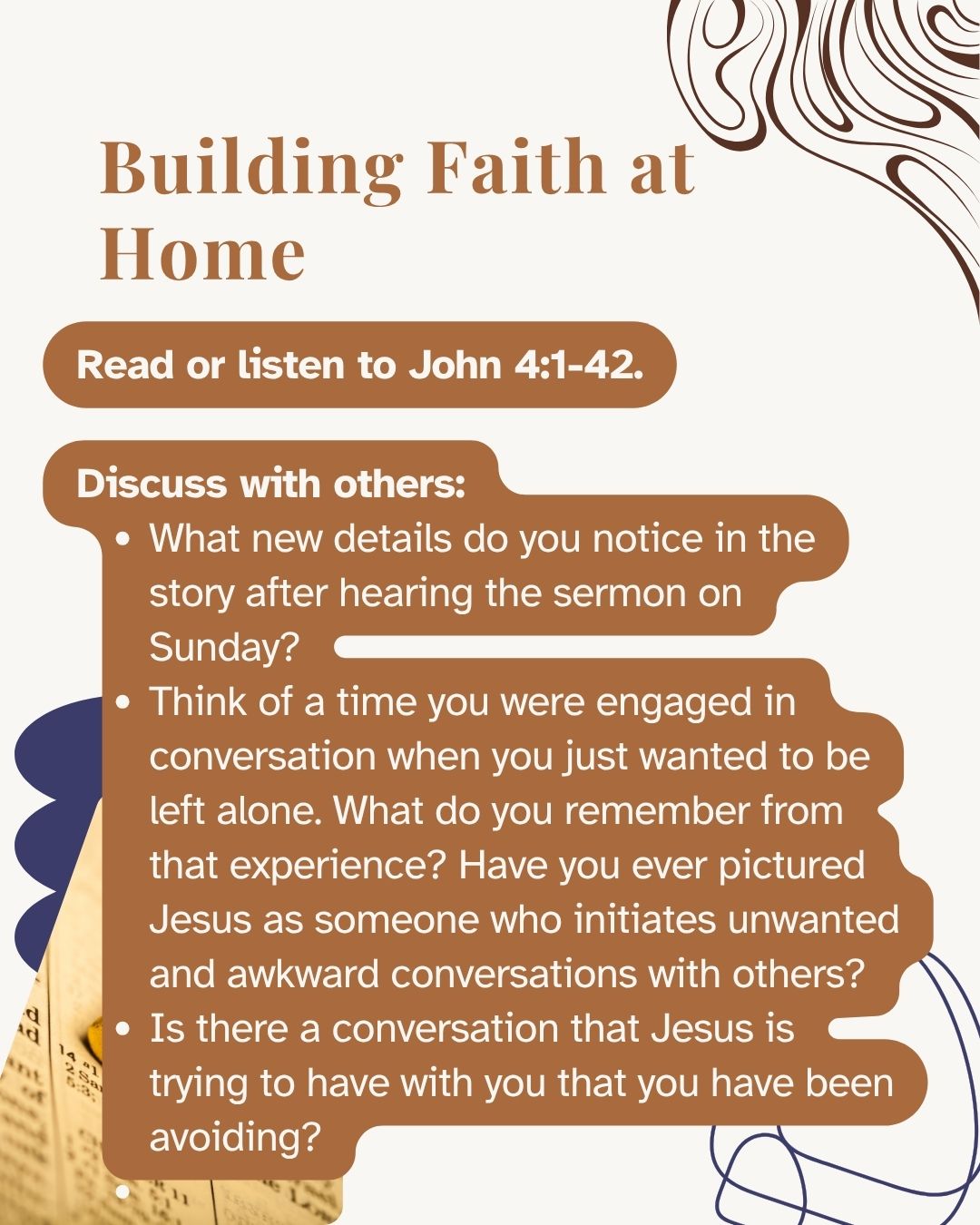 This week, we are reflecting on what it means to follow Jesus as he is on the move in our world. Take some time to discuss these questions with your household!